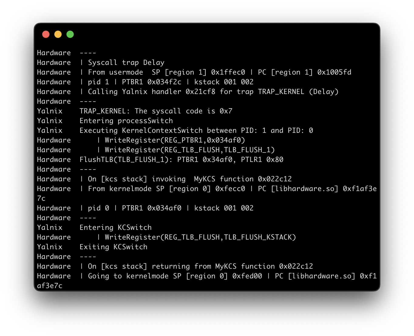 It also has a heap checker which we used in debugging, as well as yalnix_xalloc, for memory allocation checkers that would TracePrint and abort if there was an issue allocating memory in the kernel.